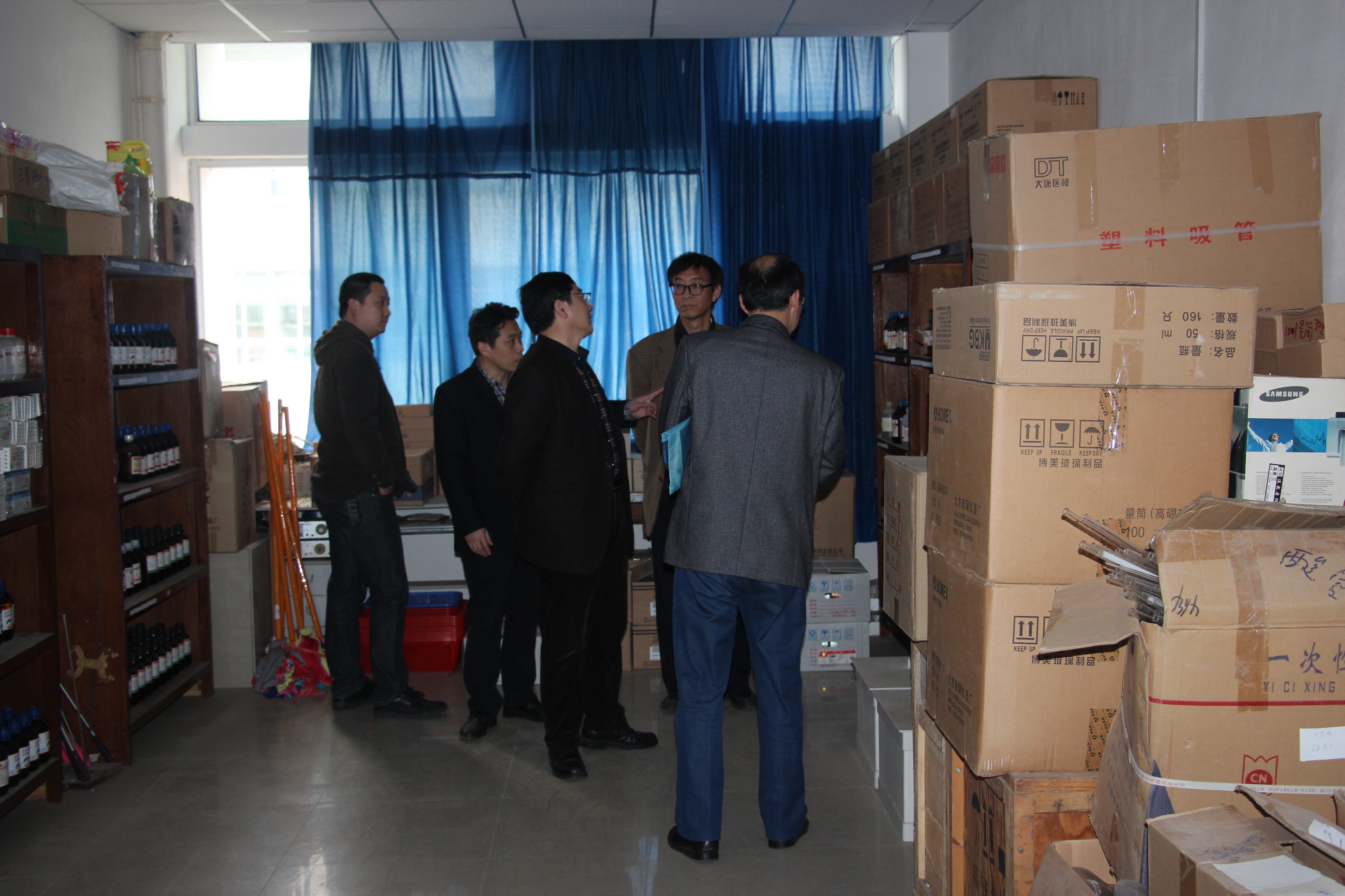 上图:检查组对我院教学实验室进行安全检查