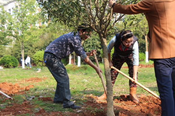 完成座谈会的议程后,药化药分党支部党员和民盟学院总支盟员在药学楼前空地一起开展了义务植树活动。在后勤集团绿化科同志的指导下,全体同志挖树坑、抬树苗、浇水,干得热火朝天,接连种下了桂花和红叶石楠树苗6颗。通过此次活动,增强了大家保护校园环境的责任感和环保意识。而且,有效加强了药化药分党支部党员和民盟盟员间的沟通和了解,提高了beat365在线唯一官网团队的协作能力,增强党的凝聚力。共同义务植树活动,种下的是树苗,播撒的是友谊,希望它们生根发芽、枝繁叶茂,收获和谐美好的果实。