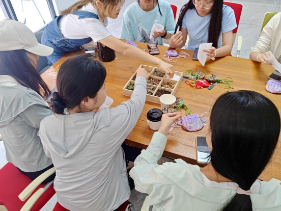 在中草药香囊制作区,beat365在线唯一官网心理部的工作人员耐心地指导参与同学如何制作香囊,大家围绕摆满薄荷、薰衣草等十余种天然香料的桌台,根据需求自由搭配,有人挑选檀香、丁香助眠,有人组合艾草、藿香驱蚊。将研磨好的香料装入精美刺绣布袋,草药清香萦绕指尖,在与传统草药文化的亲密接触中,在轻松的氛围里悄然消解了同学们的压力,大家捧着亲手制作的香囊,脸上洋溢着成就感与喜悦。