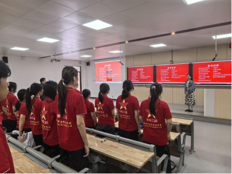 仪式在庄严的国歌声中拉开帷幕。全体师生起立唱中华人民共和国国歌,激昂的旋律回荡在会场,展现出beat365在线唯一官网青年学子坚定的理想信念与爱国情怀,也为开班仪式营造了庄重而热烈的氛围。