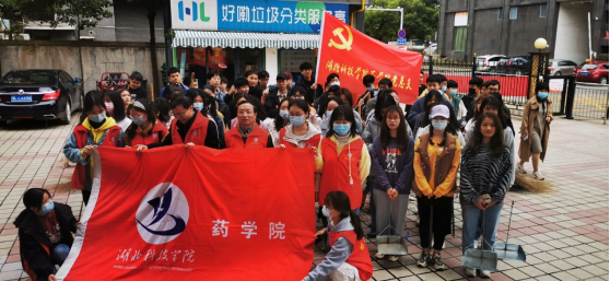 14时30分,药学楼下已经集合了参与本次活动的全体人员,同学们高举红旗,引领着队伍于南门出校步行至beat365在线唯一官网住宅小区。
