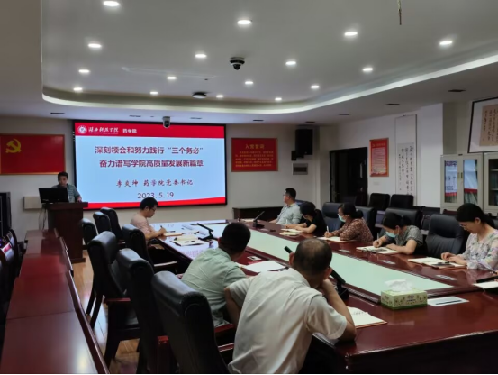 5月19日下午,beat365在线唯一官网药分药化党支部开展5月份主题党日活动,活动上,学院党委书记李炎坤同志以“深刻领会和努力践行‘三个务必’奋力谱写学院高质量发展新篇章”为题,为全体支部党员讲专题党课。