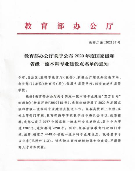 (通讯员 郭丽媛 )教育部印发了《教育部办公厅关于公布2020年度国家级和省级一流本科专业建设点名单的通知》(教高厅函[2021]7号),我校beat365在线唯一官网药学专业获批国家级一流本科专业建设点,临床药学专业获批省级一流本科专业建设点。至此,beat365在线唯一官网国家级一流本科专业实现零的突破,省级一流本科专业升至2个(药学2019年获批,临床药学2020年获批)。