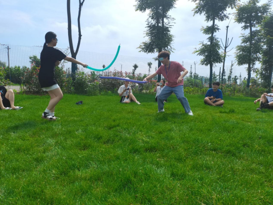 本次素质拓展于早上九点到达目的地(智敏果园),休整十五分钟后开始做游戏环节,游戏有:盲人击剑,球行万里,盲人方阵。