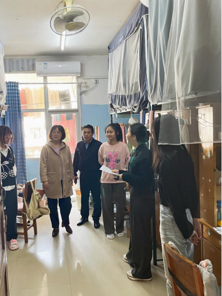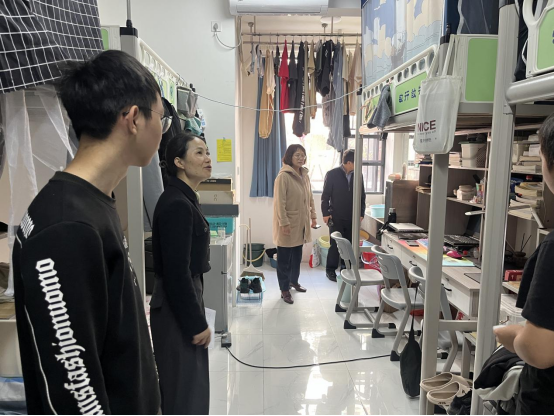走访过程中,院长刘超对各个寝室的卫生及学生的学习态度都表达了赞扬和关怀,提醒同学们要维持良好的寝室环境,在丰富课余生活的同时保持认真的学习态度,树立远大的目标,创造和谐、积极的寝室文化。院党委书记李炎坤则从安全角度,提示提醒学生们用电用水安全,建立宿舍良好作息,相互尊重包容和谐寝室关系。